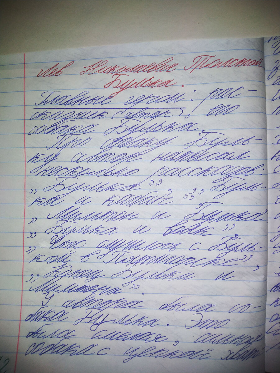 Главные герои: рассказчик (автор), его собака Булька. Про собаку Бульку автор написал несколько рассказов: "Булька", "Булька и кабан", "Мильтон и Булька", "Булька и волк", "Что случилось с Булькой в Пятигорске", "Конец Бульки и Мильтона". У автора была собака Булька. Это была смелая, сильная собака с цепкой хваткой. Однажды её пустили на медведя и он повис на ухе у зверя, вцепился в него мёртвой хваткой и висел до тех пор, пока его не отлили холодной водой. Раз хозяин поехал на Кавказ и не стал брать с собой собаку. Но Булька сломал раму, выскочил из окна и пробежал за хозяином двадцать вёрст. Булька часто ходил с хозяином на охоту, где мог кинуться и на кабана, и на волка. Собака часто была ранена и хозяин её лечил. Однажды пса чуть не убили колодники из остроги (заключённые из тюрьмы), но он сумел вырваться и спрятаться. Через шесть недель после того, как его укусил волк (по мнению автора бешеный), пёс пропал. Рассказчик решил, что Булька взбесился и ушёл.