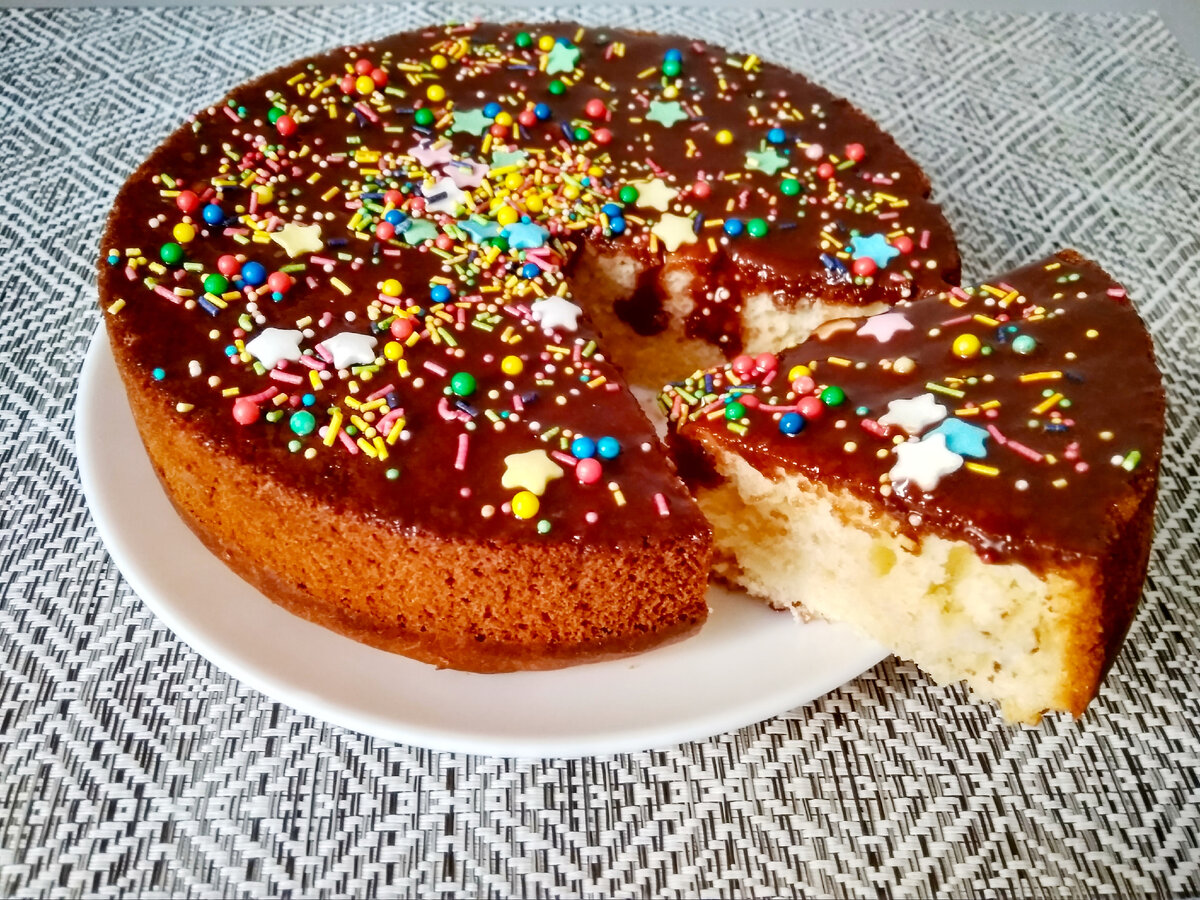 Привет, друзья! Хочу вам предложить рецепт пирога, который не требует особых ингредиентов и умений, чтобы его приготовить. Готовится он очень просто и самое главное быстро. Пирог получается очень вкусный и нежный. А если пирог разрезать на коржи и промазать кремом, то получится из него неплохой торт. В миске взбиваю миксером или венчиком 2 яйца с 80 гр. сахара до полного растворения сахара. Добавляю в полученную массу 50 мл. растительного масла и 100 мл. кефира (3,2% жирности) комнатной температуры. Перемешиваю ингредиенты в миске и добавляю в нее понемногу мучную смесь из 250 гр. просеянной муки вместе с 6 гр. разрыхлителем для теста. Тщательно перемешиваю силиконовой лопаткой ингредиенты до получения однородной массы. Выкладываю полученную массу в форму для выпечки. Дно формы смазываю маслом или застилаю его пекарской бумагой. Диаметр формы 18 см. Выпекаю пирог в разогретой духовке до 180С около 30 минут. Как только верхушка пирога зарумянится, накрываю ее фольгой и выпекаю