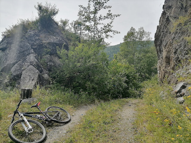 Едем на обед. Где обедать? Перед подъемом, но там ещё один! Решили перекусить на ручье Мухор бананами. Заползли в подъем-убийцу после Еловки и сразу же повернули налево перед забором.