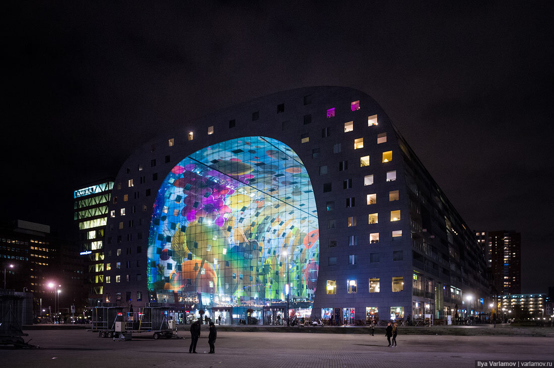 Такой вот рынок открыли в Роттердаме. Его строили 10 лет, и результат превзошел все ожидания, даже ожидания архитекторов и оформителей. Они рассказывали прессе, что не предполагали, что получится настолько красиво. На открытии рынка присутствовала нидерландская королева Максима.