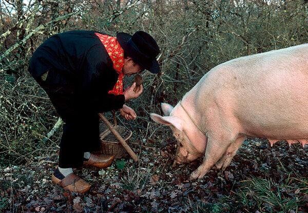 Трюфельная свинья - специально обученная домашняя свинья, используемая для поиска и извлечения из земли трюфелей в лесах умеренного пояса на территории Европы и Северной Америки. Свиньи имеют хорошее обоняние и способны чувствовать запах трюфелей на глубине до 1 метра. Считается, что половые гормоны свиней-самцов имеют сходный с трюфелями запах. Поиск свиньёй трюфелей в подходящих для этого лесах проводится под контролем человека, держащего животное на поводке. Упоминания об использовании свиней с целью поиска трюфелей известны со времен Римской империи, однако первое хорошо документированное свидетельство о подобной практике оставил в XV веке писатель и гурман времен Возрождения Бартоломео Платина. В XVII веке о трюфельных свиньях писал Джон Рэй. В 1875 году стоимость обученного соответствующим образом животного могла доходить до 200 франков. В настоящее время, однако, для поиска трюфелей чаще используются собаки, поскольку свиньи нередко съедают существенную часть находимых ими грибо
