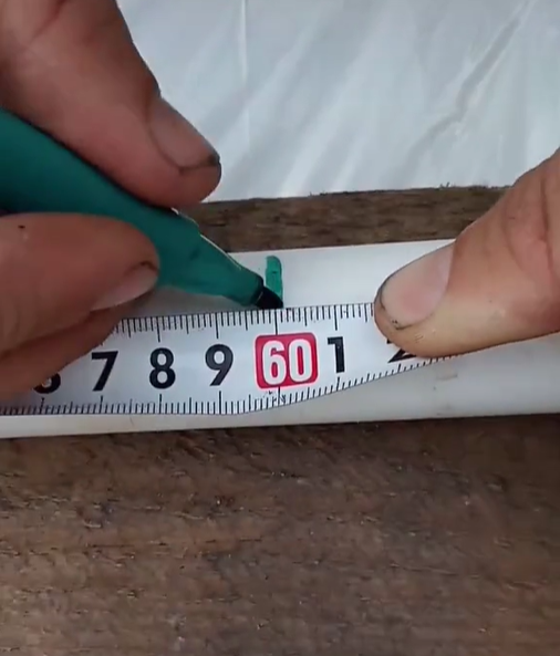 Давайте сделаем отличный держатель для фидера своими руками из остатков полипропиленовой трубы. 1) Отмеряем 60 см и режем под углом 2) Проделываем 2 сквозных отверстия в 15 см и на конце. 3) Берём хомуты 40-60мм откручиваем полностью, продеваем в отверстия и слегка закручиваем обратно