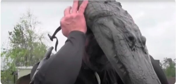 Вам когда-нибудь приходила в голову такая сумасбродная мысль, как одеться в костюм крокодила и нырнуть в водоём с настоящими хищниками? Казалось бы, это не приведёт ни к чему хорошему. Однако, всё не так просто, как выглядит на первый взгляд. Иногда не происходит совсем ничего. Гэри Саурэдж посвятил аллигаторам значительную часть своей жизни. Поймал тысячи из них и сумел разобраться, что к чему. Костюм и правильное положение в воде делает его невидимым, как человека, для крокодилов. Они легко принимают его за своего. Не пытайтесь повторить этот эксперимент сами, ведь Гэри точно распознаёт, когда ему грозит опасность, так как провёл много времени в исследованиях этих опасных животных. Аллигаторы воспринимают его в костюме, как нечто абсолютно нормальное. Ведь он длинный, ползает, имеет хвост и широкую удлинённую морду. Однако, когда мужчина поднимается на ноги, крокодилы сразу паникуют и разбегаются. Сейчас Гэри продолжает заниматься своим любимым делом, а именно продолжать изучать по