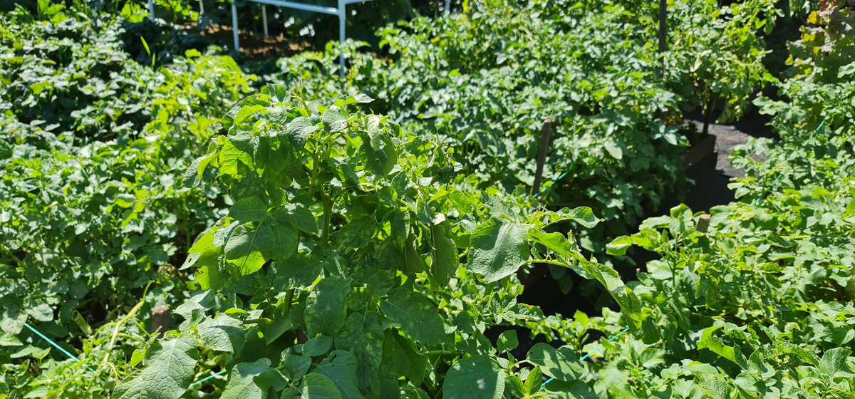 В этом году мы выращиваем картофель по особенной методике. Она растёт у нас на высоких грядах, размером 3 м на 1 м, всего посажено 40 кустов. Цель - получить максимальный урожай с минимальной площади.