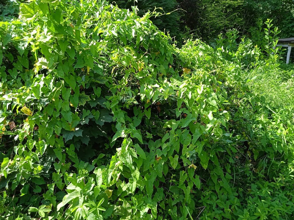 Я уже писала, что участок нам достался с некоторым элементом запущенности. Ну мягко говоря с некоторым. Когда я заглянула в сад, то сразу ушла оттуда. Моя тонкая душевная организация не выдерживала такого неухоженного сада. Вот что вы видите на картинке? Я вьюнок. Это он за месяц нашего отсутствия так вырос Но что под вьюнком? Там откровенный клён, уже достаточно большой т.е. ему не год и не два. Бересклет Фортуча (это мне программа по определению растений подсказала). А самые зоркие ещё могли и крыжовник заметить, а точнее его ягоды. Так вот если отодрать вьюнок, то до крыжовника просто не продраться. Он на столько переплёлся с этим фортучей, что даже не пытайтесь что-то найти. И этот самый Фортуча там забил очень хорошо пространство. Даже попытки прорвать там траву заканчиваются или натыканием на иголки крыжовника (очень вкусный), или выдеранием этого самого Фортучи. Руки жалко и Фортучу жалко. Убрали клён, продрали вьюнок. Хоть смотреть можно. Красиво. Мои приятельницы по рукодел