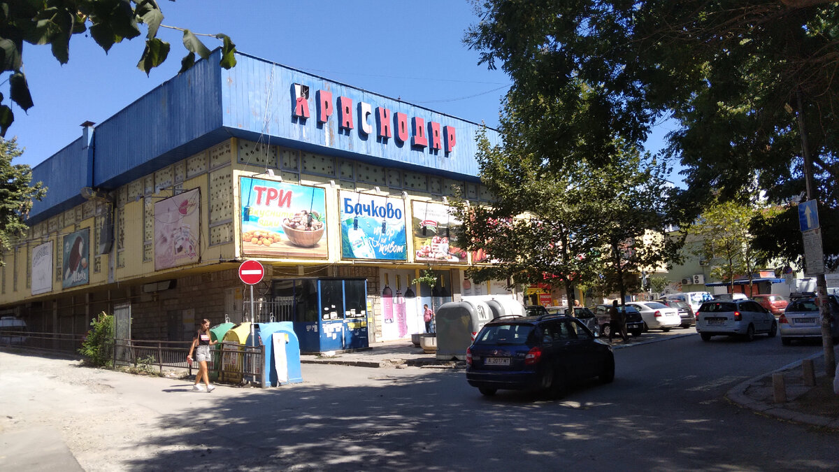 На центральный рынок Бургаса я попала в понедельник уже к концу дня, так что покупателей было очень мало, да и продавцов сравнительно немного, и рынок казался едва ли не безлюдным. На рынок здесь как-то принято ходить с утра. Рынок называется "Краснодар". Бургас- побратим российского города Краснодара и это нашло отражение в названии рынка. Пройдя по фруктово-овощным рядам, я убедилась, что ассортимент и цены практически те же,что и в Карнобате. Ну, плюс-минус, но незначительно. Однако меня интересовали в первую очередь рыба и морепродукты, которые здесь продаются."Краснодар" как раз и славится тем, что здесь можно купить любую черноморскую рыбу, причём хорошего качества. Магазинчиков, торгующих рыбой, работало два. Перед одним из них лотки с товаром стояли ещё и перед входом. - Сфотографируй меня, я фотомодель,- рассмеялась продавщица, увидев, что я снимаю лотки с их содержимым . Почему бы и нет? Девчушка симпатичная. По привычке левы умножаю на 50 и перевожу в рубли. Сейчас офиц