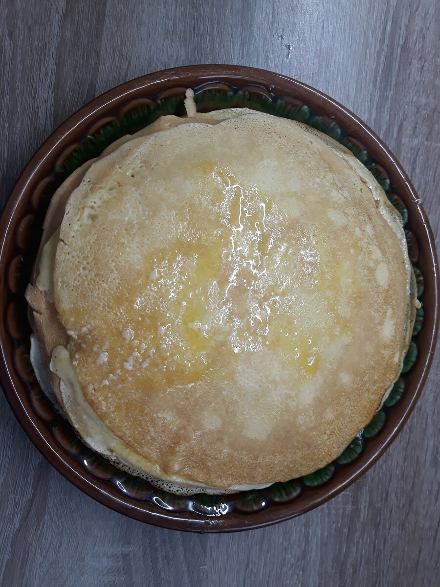 Запах блинов утром – это воспоминание детства, родительский дом, мама и папа. Какое было хорошее детство!!! Любовь родителей!!! Став взрослой. Став мамой – надо тоже такую любовь дать ребенку! Так что готовим тонкие БЛИНЫ на утро!!!! Нам потребуются 2 шт яиц, 1 ч.л. соли, 0,5 ч.л. соды и 1 ст.л. сахара и под.масло 1 ст.л. – все очень хорошо перемешиваем. Добавляем 1 большую чашку теплого молока (я беру чуть больше половины стакана молока и остальное наливаю кипяток (экономия и молока и экономия времени)). Еще раз хорошенечко мешаем. Добавляем муку, до состояния жидкой сметаны (это у нас в деревне так говоря) И начинается процесс готовки блинов. Для этого блинную сковороду разогреваем, а после только с помощью половника выливаем тесто блинов на сковороду. А блины мы конечно же пропитываем сливочным масло, так они еще вкуснее Приятного аппетита