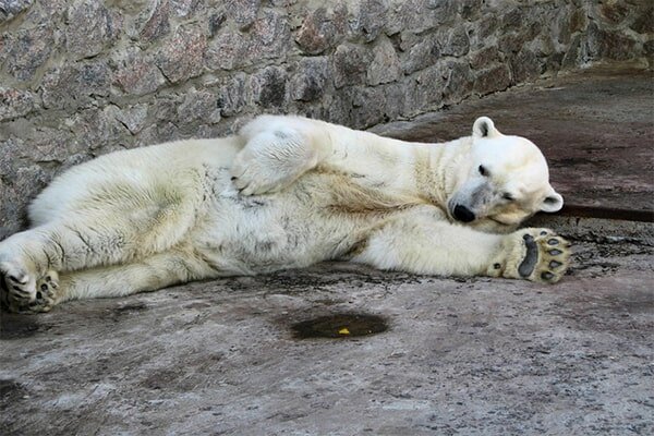 В то время как черные медведи, гризли и другие виды медведей проводят каждую зиму в спячке, отказываясь от еды, питья, движения в течение нескольких месяцев подряд, белые медведи остаются активными всю зиму.Так почему белые медведи не впадают в спячку? Просто белым медведям не нужно спать всю зиму, потому что в самые холодные месяцы, им доступно много еды, они выходят на морской лед, чтобы охотиться на тюленей, не тратя времени на сон. Единственное исключение - беременность, когда самка белого медведя выкапывает себе берлогу и остается запечатанной внутри, выживая за счёт запасов жира, пока ее детеныши не станут достаточно большими, чтобы выжить в большом мире.