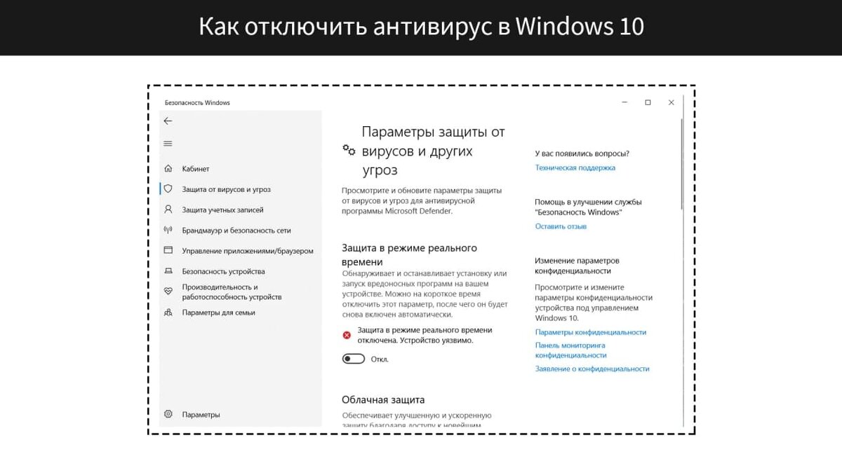 Как отключить антивирус в Windows 10. Система Windows 10 имеет встроенную антивирусную защиту, но часто бывает так, что этот антивирус срабатывает против программ или взломщиков лицензионных программ, которые мы хотим установить, но "Защитник" считает эти программы вирусом. Онлайн курсы на русском языке. Графический дизайн, Рисование и иллюстрация, Моушн дизайн, 3D-графика, Видеомонтаж, Цветокоррекция - образовательная платформа с онлайн-курсами и сертификаты Чтобы отключить антивирус нужно: 1️⃣ Нажать "Пуск", "Параметры", перейти в раздел "Обновления и безопасность" 2️⃣ Далее выбрать в левом меню "Безопасность Windows", а в правом "Защита от вирусов и угроз" 3️⃣ Перейти в «Управление настройками» и для параметра "Защита в режиме реального времени" поменять на «Выкл».