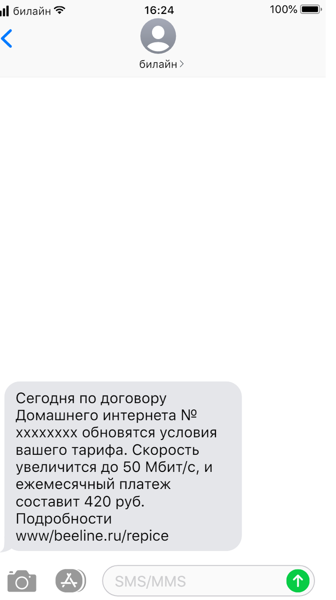 Абонентом Билайна я являюсь уже давно. Еще с тех пор, как они были Корбиной. Вернее, до того, как Билайн Корбину эту купил. Это я про интернет. Обычный проводной интернет. Оранжевый провод. Никаких роутеров, вай-вайфаев и прочих услуг. Мне всего хватало. Так прикинула, уже почти 20 лет (ну чуть меньше) пользуюсь этими услугами Когда была Корбина, проблем со связью было много, но по сравнению с модемом, который был у меня подключен тогда к телефонному проводу, меня все устраивало В первое время после перекупа Билайном, связь была тоже не на высоте, но затем все наладилось, и я наслаждалась. Много лет. И я думала, что это будет длиться вечно... Но вдруг! Приходит сообщение: Поясню, что у меня скорость всегда была 10 Мбит/с и меня это вполне устраивало. Для моих нужд 270 рублей платить - это было просто насаждение. Я могла смотреть фильмы онлайн, пользоваться любыми браузерами, скачивала я что-то довольно редко, поэтому цена/качество было на высоте И тут такое.... Ну пару лет назад было
