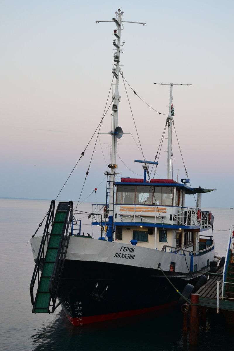 Когда мы узнали, что из Пицунды можно отправиться на морскую прогулку, то очень обрадовались, потому что любим этот вид отдыха. Узнали, в общем, случайно – гуляли по набережной Пицунды, подошли к причалу, где стоял небольшой кораблик, увидели объявление о морских экскурсиях. Сейчас точно уже не вспомню расписание, но предлагалось три варианта: простая часовая прогулка вдоль берега, прогулка с купанием в море и экскурсия в Мюссеру. Выбрали, конечно, третий вариант – нам он показался самым интересным.