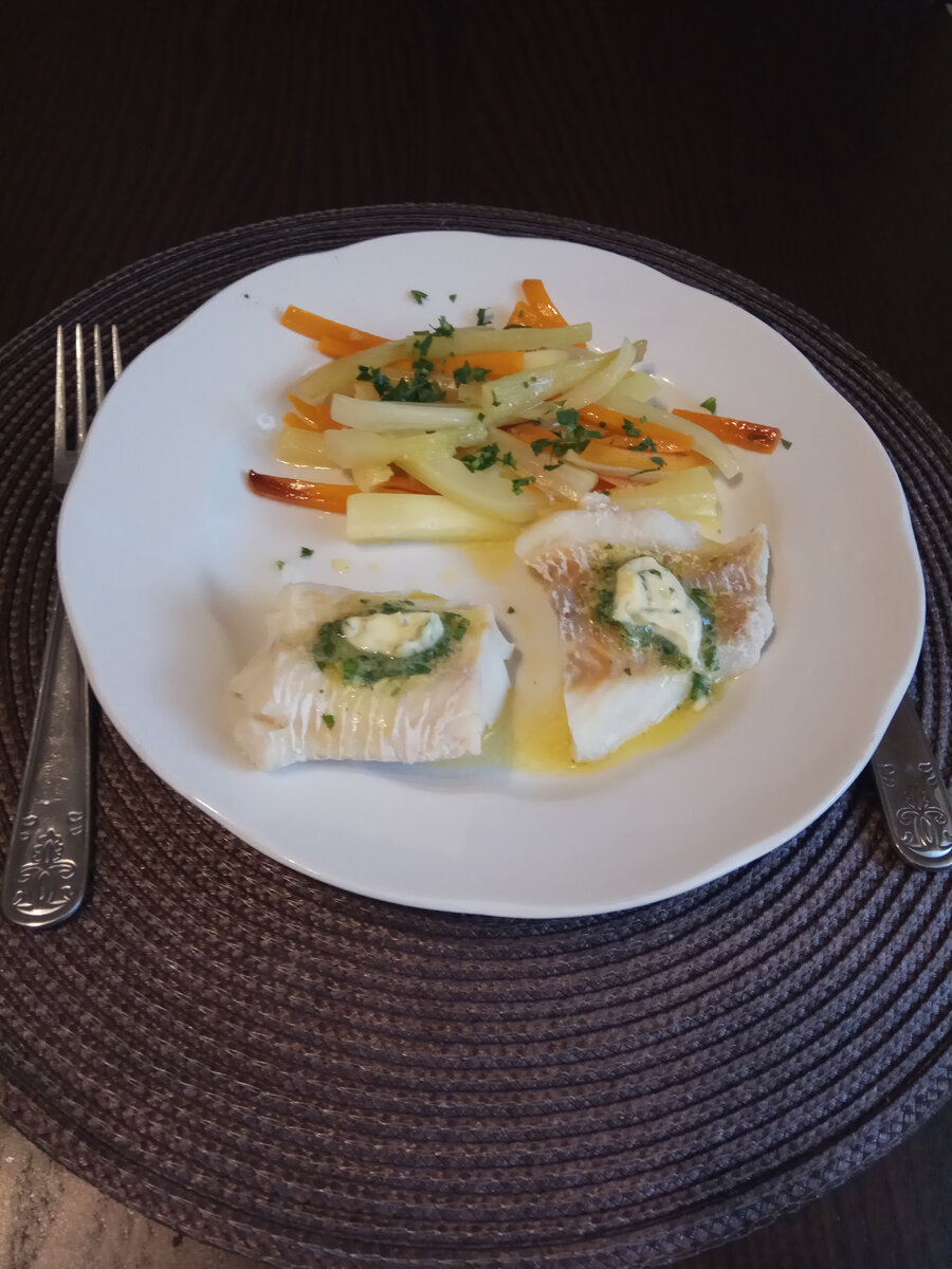 Здравствуйте читатели моего канала и добро пожаловать ко мне на кухню. Треска всем хороша. Как не готовь, все равно получается диетическое блюдо. Рецепты с использованием этой рыбы всегда просты, и приготовление доставляют удовольствие. Делюсь незатейливым рецептом. Продукты доступные. Время на готовку уходит немного. Если все сделать правильно, то от гармоничного сочетания нежной мякоти трески, с соусом из сливочного масла и лимона, вместе с тушеными овощами или отварным картофелем, получите незабываемый вкус. Попробуйте. Надеюсь, не пожалеете. Ингредиенты: · Филе трески – 600г · Сливочное масло – 60 г · Лимон –½ шт. · Цедра лимона – 1 ст. л. · Петрушка – 50 г · Соль – 3 ч. л. · Сахар – 1 ч. л. Как приготовить: Не забудьте полистать галерею 1. Рыбину размораживаем в холодильнике, снимаем филе. 2. Наливаем 0.5 л воды в миску, добавляем соль, сахар, размешиваем. Подготовленное филе рыбы нарезаем на куски, выкладываем в миску, заливаем раствором из соли и сахара. Маринуем 20 минут. 3.