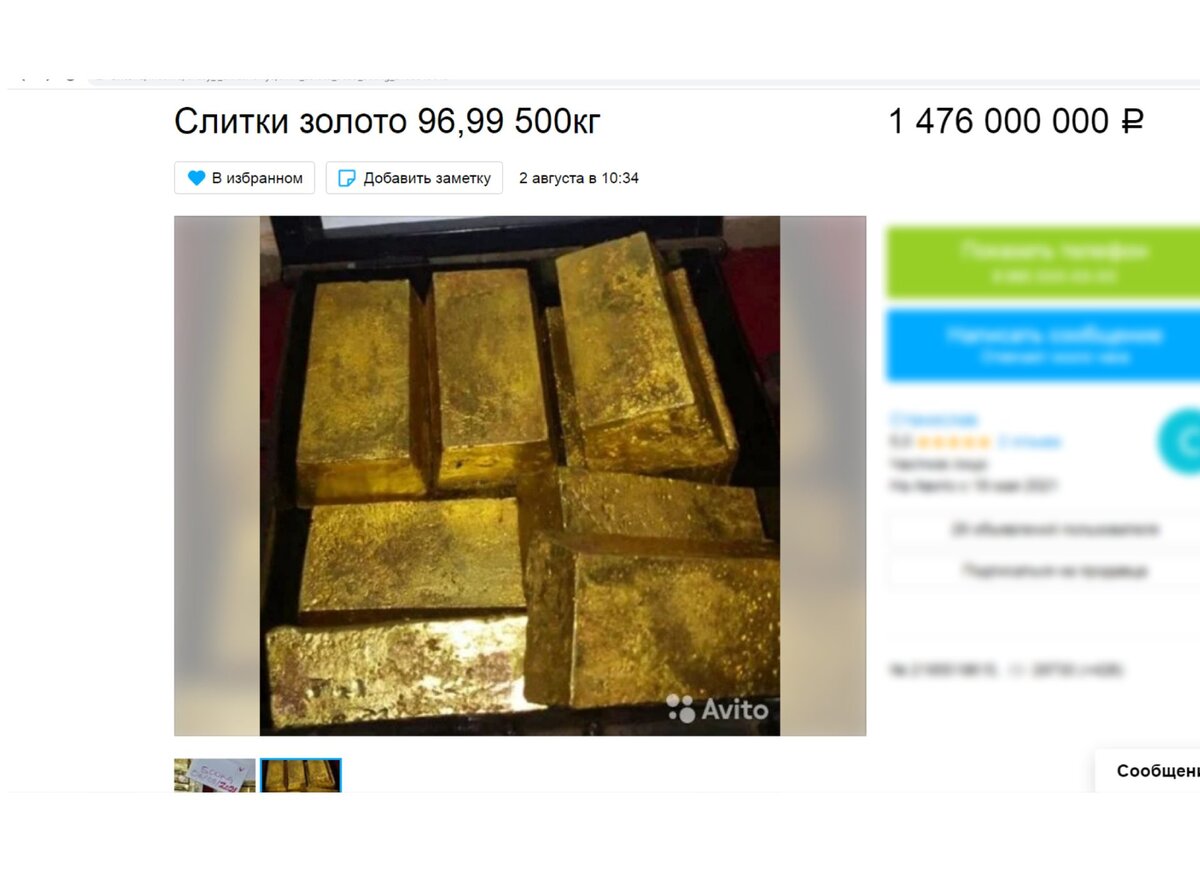 Когда мы говорим о том, что неплохо было бы вложить деньги во что-то стабильное и таким образом обеспечить безбедную старость себе, а по возможности и своим детям, то первое что приходит на ум – покупка золота. Конечно, ведь человечество тысячелетиями хранило деньги в золоте! Вспомните пиратов с их сундуками, пресловутую царскую казну и понятие «золото валютный резерв». Согласитесь, только сама мысль, что у вас есть финансовый резерв в виде запасов золота, успокаивает и делает жизнь более стабильной в эмоциональном плане. Кто-то понимает буквально и начинает скупать золото в виде ювелирных украшений. Но это отдельная тема для разговора. Более «продвинутые» понимают, что покупать всё-таки стоит золото в слитках. И тут возникает резонный вопрос: а где эти слитки продаются? Где, где – оказывается на Авито! Там подобных объявлений полным-полно! Не могу сказать, что отрицательно или положительно отношусь к площадке Авито. Рассматриваю её просто как инструмент избавления от "ненужного" или н