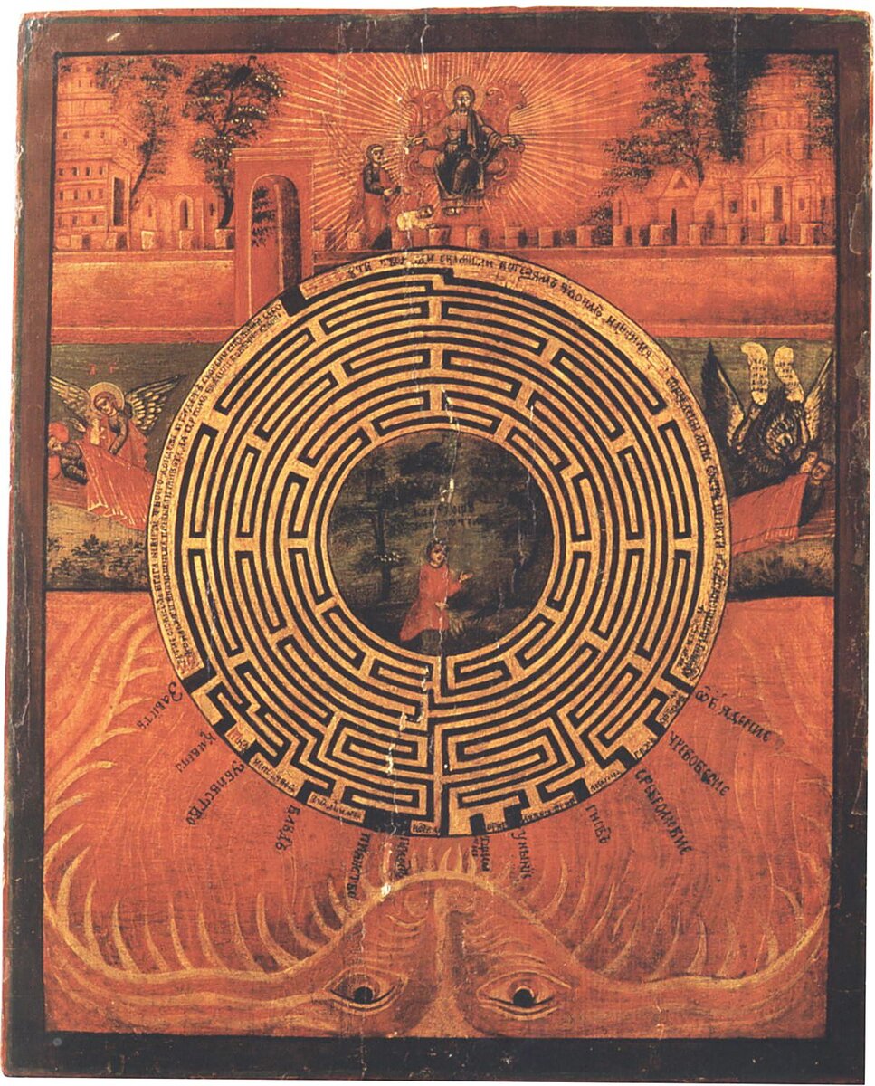Болезни, проблемы, неприятности в жизни - это последствия тех грехов, которые мы совершаем в жизни. И «Кто из вас без греха, пусть первый бросит камень» - эта известная цитата из Евангелия говорит о том, что безгрешных людей не бывает. Но как узнать свой самый главный грех, который является причиной большинства страданий? Икона Лабиринт Духовный Редкая и необычная икона под названием «Лабиринт Духовный» представляет собой детектор греховности: если взглядом из центра пройти изображенный на иконе лабиринт, вы упретесь именно в свой главный грех. Икона «Лабиринт Духовный» представляет собой земной путь души христианина при помощи образа лабиринта, который пришел из античных времен в средневековую Европу, а потом и на Русь. Образ лабиринта очень неожиданный для русской иконографии, где традиционно изображались сцены из Священного писания. Главным сюжетом и смыслом иконы является лабиринт, который имеет 13 выходов, из которого только один выход (в некоторых списках иконы два) ведет вверх,