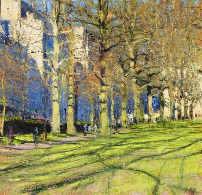 Эндрю Гиффорд всегда рисует с натуры. Тихий йоркширский пейзаж с боярышниками и дубами, апельсиновая роща в Греции, буквально пульсирующая жизнью, промышленные пейзажи, железнодорожные пути Лондона, Темза...