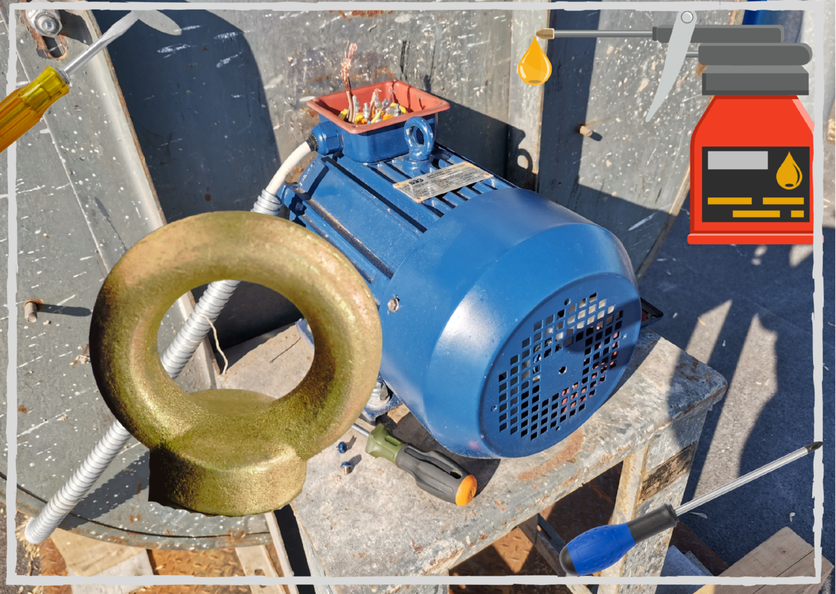 Сегодня вечером на меня свалилась неожиданная подработка, на одной фирме, нужно было установить и подключить электродвигатель. Работа не пыльная, тем более что в цеху, где предстояло работать, есть кран-балка. Это значит не придется тащить движок на себе к месту установки. Пока я переодевался у рабочих в цеху возник небольшой спор - можно или нет подвешивать двигатель за небольшое кольцо, расположенное сверху. Практически на всех более-менее больших электродвигателях есть такое кольцо. Один из рабочих утверждал, что такое маленькое кольцо просто не выдержит вес двигателя, а другой говорил, что оно специально предназначено для подъёма.