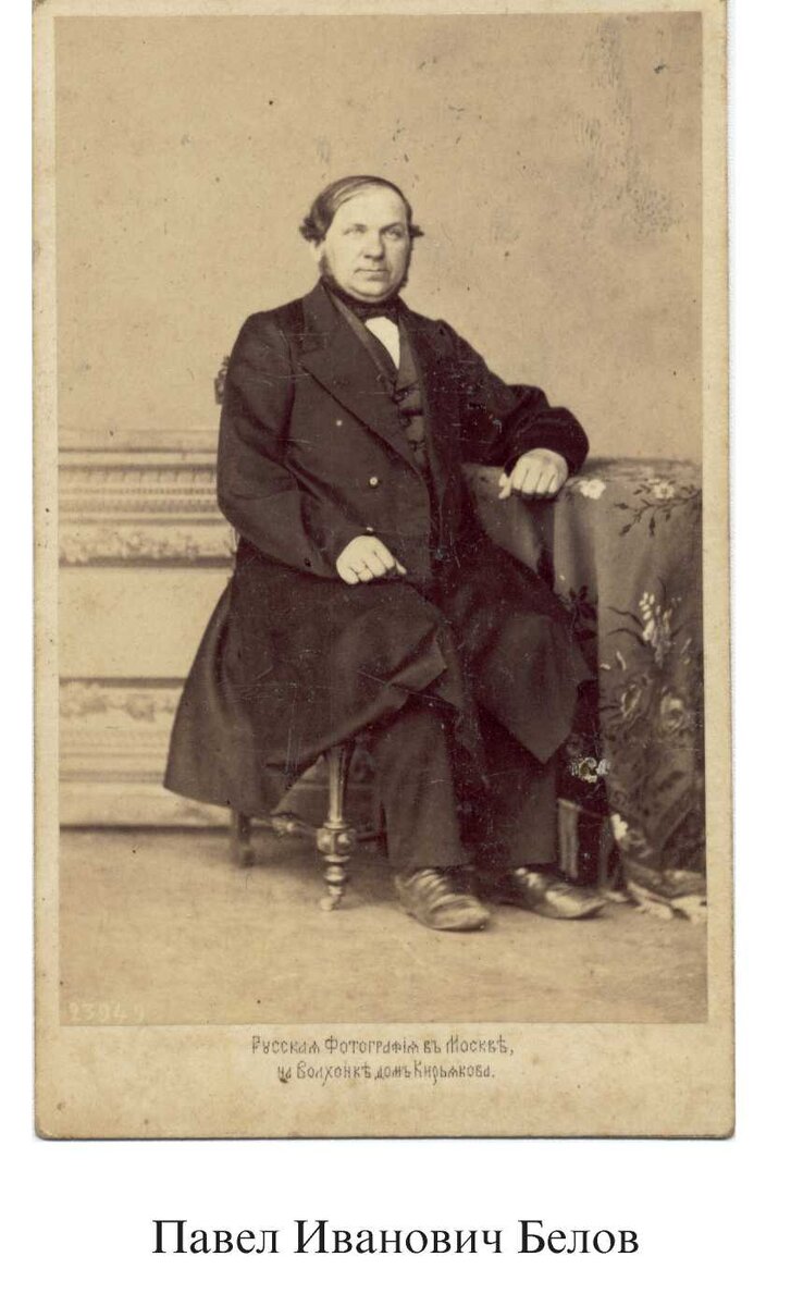 Белов Павел Иванович (5.VII.1827 – 19.IX.1893) в 1858 году вступил в единоличное владение половиной дома на Главной улице. Он был женат на Ольге Васильевне, дочери богатого и многодетного суздальского купца В. А. Жинкина. Торговля Павла Ивановича ширилась и процветала. К мучной и бакалейной торговле прибавился ренсковой погреб, торговля винами, фруктами, кондитерскими изделиями. По суздальским масштабам это был «магазин братьев Елисеевых». В 1875 году Павел Иванович числился купцом 2-й гильдии и имел средства, чтобы выкупить смежную половину дома на Главной улице; теперь он владел всем домом и прилегающей к нему усадьбой. Так как садовый участок при доме на Главной улице был небольшой, Павел Иванович в сентябре 1879 г. купил за 900 рублей у Петра Ильича Недошивина, дяди своего суздальского зятя, садово-огородный участок против Дмитровской церкви на левом берегу реки Каменки. На участке был деревянный на каменном фундаменте дом, ряд старых лип, защищавших участок от северных ветров, гряды, фруктовые деревья, кусты смородины, вишенник, лужайка, покос по берегу, летом сооружалась купальня.