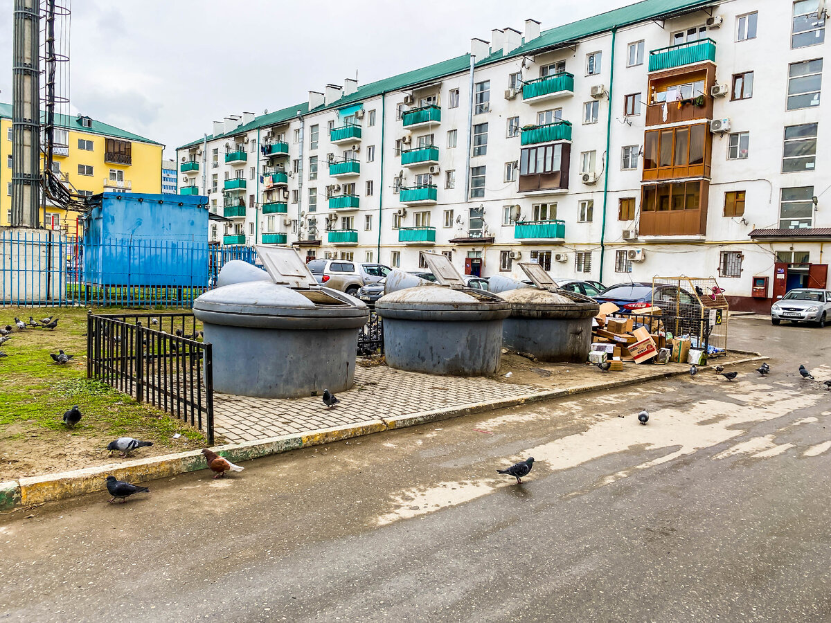 В городе Грозном мы с другом останавливались в гостинице на проспекте Путина. Окна из нашего номера выходили во двор. Во дворе же мы и поставили машину на парковку на ночь. И вот, идя от машины к нашему отелю, обратил внимание на мусорные баки, которые там стоят. Они как бы углублены под землей. И сверху закрываются крышкой. С одной стороны вроде очень удобно. Ничего не рассыпается, мусор вокруг не валяется. Хотя, кто-то выкинул картонные коробки рядом, но это потому что они банально не влезли в бак. Вот и оставили их просто так, около баков. И тут же у меня возник вопрос. Как же, интересно, потом мусор вывозят отсюда. Ведь его все равно надо как-то доставать потом из-под земли. Скажу я, подобной технологии я еще нигде не встречал. У нас в городе, да и во других городах, где мне приходилось бывать, для мусора стоят обычные контейнеры. Ну там все просто, подъезжает машина, подцепляет контейнер, высыпает в бак и везет содержимое на свалку. А вот как это делается здесь, в Грозном - не со