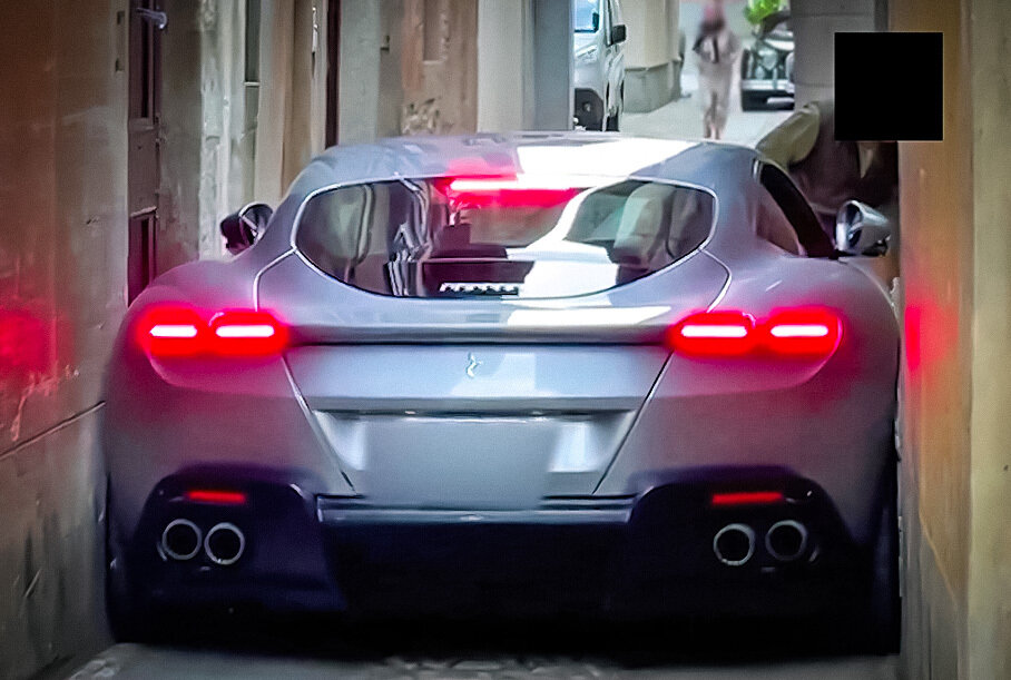 На просторах сети интернет появилось короткое видео суперкаром Ferrari Roma. На кадрах видно, как водитель тщетно пытается выбраться с узкой улочки. Продвигаюсь понемногу вперёд загоняя 620 сильное купе в положение из которого сложно выбраться без повреждения лакокрасочного покрытия. Кстати такой автомобиль в России стоит 17 000 000 руб. Что творилось в голове у водителя, который решился протиснуться в такую узкую улочку не понятно, но похоже он просто не рассчитал габариты, ведь размеры Ferrari Roma составляют в длину 4656 мм, а в ширину 1974. То есть спортивное купе по этим параметрам крупнее Toyota RAV4! В каком именно городе Италии происходил инцидент неизвестно, также неизвестно чем в итоге закончилось история, но вряд ли удалось вызволить автомобиль не поцарапав краску. Надеемся, что владелец Ferrari успел оформить каско.)
