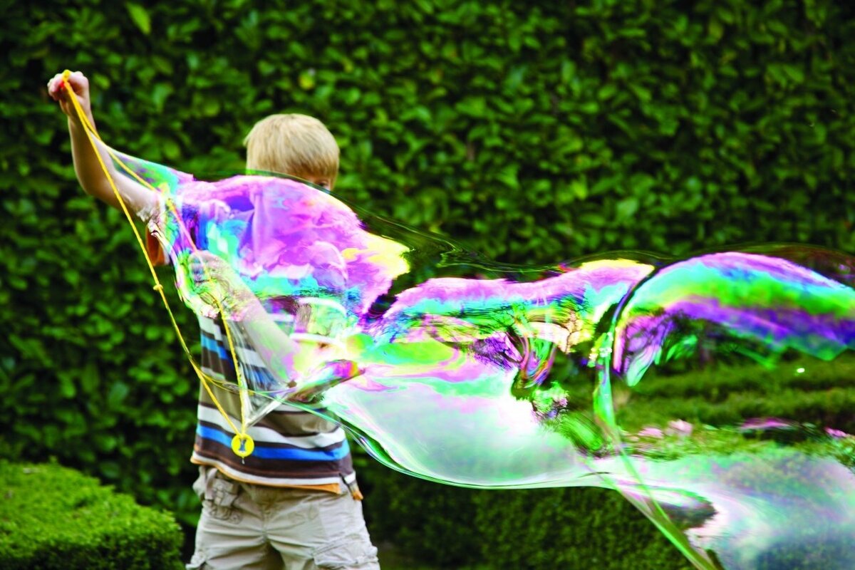 Почему же мыльные пузыри обладают магической способностью превращать любое детское торжество в незабываемое событие? Вспомните то чувство волшебства и легкости, которое посещает каждого из нас, когда сквозь солнечные лучи проплывает радужный шарик, так хрупкий и непостоянный. Ведь может ли быть что-то более универсально радующее детей всех возрастов, чем возможность создавать и запускать в небо эти маленькие чудеса? Рецепт гигантских мыльных пузырей: • 1/2 чашки любого детского шампуня; • 1,5 чашки дистиллированной воды; • 2 чайные ложки сахара (без горки). Смешать все компоненты и добавить такой же объем глицерина (есть в любой аптеке). Чтобы пузыри были прочными и долголетающими, используйте мягкую воду. В жесткой много солей, и пузыри быстро лопаются. Самый простой способ смягчить воду – прокипятить ее и дать отстояться, соли осядут на дно. Смешивать ингредиенты лучше в теплой воде, так они быстрее растворятся. Итак, раствор готов. Осталось сделать волшебные палочки