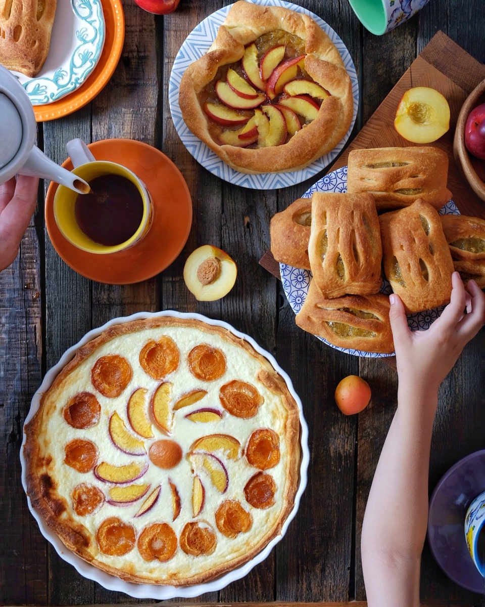 Пирог с творогом, нектаринами и абрикосами