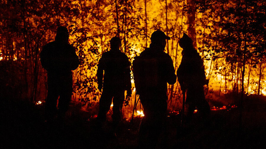 Греция, остров Эвия. Эвакуация жителей одной из деревень. Многие считают видеорепортажи оттуда самой живой и актуальной иллюстрацией для недавнего доклада ООН по климату. Сотни лесных пожаров охватили страну после того, как там установилась рекордная за последние 40 лет жара. Там было под +50. В Межправительственной группе экспертов по изменению климата (МГЭИК) сошлись во мнении, что весь мир незаметно превращается в сплошную зону стихийного бедствия.
