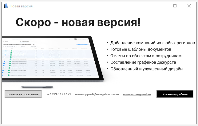 С недавнего времени при запуске программы АИПП РСПБ стал появляться информационный баннер: В описании продукта на сайте https://arma-guard.ru/ представлен широкий функционал, а также тарифы: от 5000 руб. за одно юридическое лицо без учёта НДС. Росгвардия пока что никак не комментирует данный продукт.