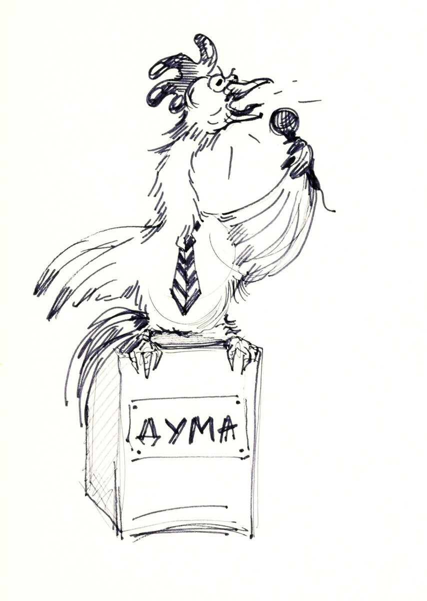 Прослезились звери и выбрали Петуха президентом скотного двора. Вот тут-то и начались настоящие дела. Бараны безропотно стали сдавать шерсть и деньги потекли к дельцу рекой. Однако ему этого было мало. Много денег уходило на задабривание Волков, чтобы они не задирали Овец в рабочее время и выглядели прилично – как-никак президентская охрана. Лизавета Патрикеевна то и дело требовала денег то на новые сапожки, то на платиновые зубы. Да ещё каждой жене подарок купи, да каждого цыплёнка одень, обуй, накорми. Денег катастрофически не хватало. Тогда президент издал указ – монополизировать торговлю молочными продуктами, то есть взял бизнес в свои крылья и всю прибыль направил в свой карман. Коровы было замычали протестующе, но возле каждого стойла стали околачиваться Волки, и они смирились. Бараны ходили по скотному двору ощипанные, тыкались мордами в полупустые кормушки и ждали, когда же наступит счастливая жизнь. А тут новый указ – увеличить экспорт перьев и пуха, и Гуси тут же пошли в расход. За них заступились Индюки и надавали Волкам тумаков. Те вызвали подмогу, и драка затянулась. Зато и денег загрёб Петух вагон. Гусей всё-таки распродали, как и встрявших в не своё дело Индюков. Сложивших головы в драке Волков тоже не забыли – шкуры очень выгодно толкнули в модный меховой салон, мясом расплатились с уцелевшими Серыми, а из бюджета выбили деньги сиротам. Всю прибыль забрал президент, на радостях запил и не просыхал так долго, что Волки успели хорошенько подчистить его заначки – бог велел делиться. Теперь они ходили в золоте, не боясь охотников, и развлекались травлей Собак, которые после нескольких инцидентов забились в свои будки и оттуда глухо рычали. Устав от тихой жизни Волки наехали на Быков, чтобы лишний раз показать, кто на дворе хозяин. После драки они завалились в трактир с отбитыми у Быков Тёлками и пьянствовали до утра, а на рассвете вломились в свинарник и под закуску зарезали нескольких поросят. Свиньи подняли визг и разбудили самого Петуха. Он выслушал обе стороны и издал указ – монополизировать заготовку молочных поросят.