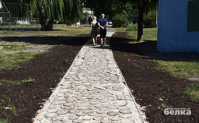 В Любенском микрорайоне на улице Мележа благодаря стараниям местных коммунальников появилась 40-метровая дорожка из деревянных спилов. Для её создания использовали аварийные липы, берёзы и тополь. — На этом месте была «заячья» тропа, по ней обычно прохожие сокращали путь до спортивной площадки, — рассказала предысторию начальник ремонтно-строительного участка предприятия «Советское» Наталья Хацкова. Это её идея пустить старые спиленные деревья в дело. Дорожку соорудили за четыре дня. По словам Хацковой, много времени занял подбор одинаковых в диаметре чурок. Гнилые и без коры сразу забраковывали. — Сначала деревянные спилы уложили в песок, но через несколько дней поняли: дорожку нужно укрепить цементом. Дело в том, что местные мотоциклисты то ли в шутку, то ли из спортивного интереса решили испытать новую тропу и в первый же вечер её разбурили. Мы с коллегами сначала расстроились, а затем нашли антивандальное решение, — улыбается специалист. Таких тропинок в Гомеле больш