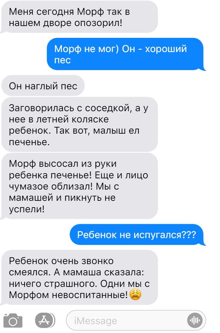 Кому понравится, если чужой пес утащит что-то Ваше?! А такие случаи бывают. Именно сегодня для Вас смс переписки с хозяевами тех собак, которые тащили, что могли. Несмотря на то, что хозяева занимались их воспитанием. А вот, что бывает, когда жадный бульдог приходит в гости к таксе: Хозяева заботятся о собаке, приносят ей еду, собака радуется. Но если еду приносит хозяевам собака, они не всегда рады. Иногда одного предприимчивого лабрадора всем двором ловят. Улыбайтесь каждый день! Если Вы можете - помогите нам в ежедневной заботе о брошенных кошках и собаках. Ваша помощь многим из них просто необходима. Спасибо всем, кто помогает нам с передержкой. Мы знаем, сколько это отнимает времени и сил! Для помощи брошенным кошкам и собакам - карта СБ 4276 4000 9548 8699 (оформлена на Светлану Геннадиевну К.), карта ВТБ 4893 4704 7605 7606 (я - Юлия Витальевна П.). Для PayPal адрес почты: pleschakovaiu@yandex.ru. СПАСИБО! Писать можно на эту же почту. Не забудьте указать: "хвостикам" или свой в