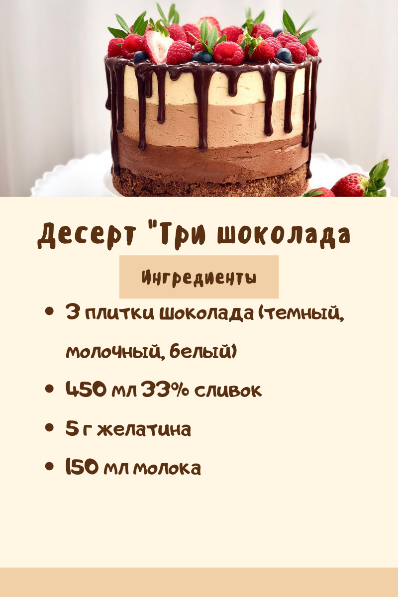 Здравствуйте,дорогие читатели моего канала. Сегодня хотела бы поделиться с вами рецептом известного всем десерты "Три шоколада". Наверняка каждый из вас хоть раз пробовал этот вкуснейший торт,но я решила сделать этот "торт" порционным. Рецептов на просторах интернета много, хочу поделиться одним из них. А в конце напишу ошибки,которые не следует допускать при его приготовлении. Приступим Сразу предупрежу,что данных ингредиентов хватает на 5 стаканчиков. Сливки по возможности берите Петмол,я взяла Брянские,потому что других не было в магазине. Итак,для начала взбиваем сливки до стоячих пиков. Не забывайте,что сливки должны быть холодными Убираем миску со сливками в сторону и приступаем к шоколаду. Конечно,можно было бы растопить его на водяной бане, но мне захотелось его попробовать растопить с помощью горячего молока. Подогреваем молоко и кладем в него шоколад,все перемешиваем И получаем однородную массу Сразу же готовим желатин.Заливаем его горячей водой и размешиваем Соединяем ингред