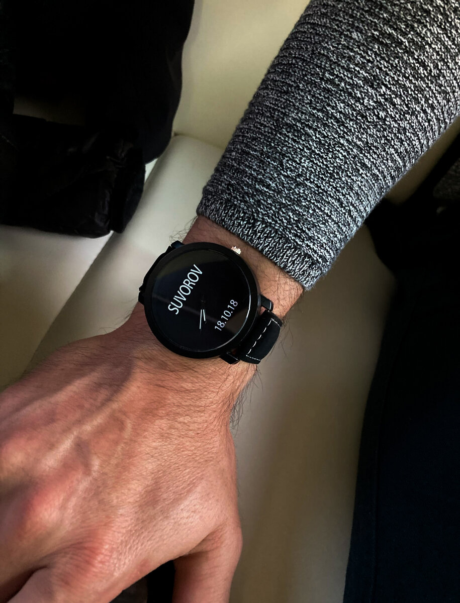 Признаться честно, я слабо представляла, что это вообще такое, но на деле все гораздо проще: суть в том, что это обычные наручные часы, но в то же время необычны тем, что на них можно сделать любой циферблат! Надпись, картинку, логотип, пожелание - все что угодно. И этими часами я убила двух зайцев одним выстрелом: это действительно памятный, уникальный подарок сделанный специально для него, и к тому же, мой муж всегда любил часы, поэтому носил их с удовольствием, что не может меня не радовать ;)