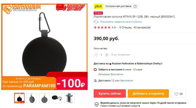 Приветствую всех на моем канале. Специально для вас готова очередная подборка товаров с Али. Китайцы не перестают удивлять и радовать нас приятными ценами. Обязательно ставьте лайк, если подборка вам понравилась. 1. Портативная колонка RITMIX SP-120B А ты какую музыку предпочитаешь? Смотри, портативная колонка RITMIX SP-120B обеспечит прослушивание на протяжении трёх часов. 40-миллиметровый динамик мощностью 3 Вт легко справится с любым музыкальным жанром. Bluetooth 4.1, есть защита от воды и карабин для крепления. А цену видели? Надо брать, не думая. Купить можно тут Промокод: OGOJULY100 Итоговая цена: 290₽ / 3.83$ 2.Женские серьги со стразами Девочки, забирайте нежные серьги-гвоздики всего за 22₽! Они станут изюминкой в любом вашем образе. На выбор две расцветки, выбирайте понравившуюся и кидайте в корзину, пока купон не сгорел. Отличный подарок на любой праздник Купить можно тут Купон продавца: 75₽ от 76₽ Итоговая цена: 22₽ / 0.29$ 3. Шумоподавляющие наушники Soundcore Life P3 TWS