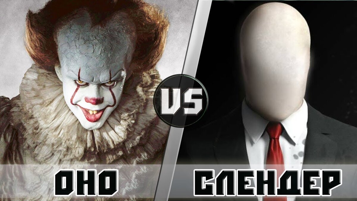Сегодня у нас противостояние паранормальных тварей, которых обычно связывают с ужасами и страхами. Пеннивайз против Слендера Слендермен - персонаж городских легенд. Представляет собой неестественного высокого и худого мужчину, без лица. Он всегда одет в черный костюм, и известен тем, что похищает людей. Цели и мотивы остаются загадкой. Пеннивайз, также известный как Оно - персонаж из Вселененной Стивена Кинга.Он олицетворяет абсолютное зло и питается страхом людей. Чаще всего он поялвяется в виде демонического страшного клоуна - Пеннивайза. У этих персонажей есть и еще небольшое сходство. Против Пеннивайза выступали дети, а Слендер тоже часто похищал именно детей. Начнем со сравнения телепатии. И клоун и тонкий человек имеют возможность проникать в сознание человека. Слендермен может даже изменять воспоминания, и вообще свободно манипулировать чужим сознанием. Пеннивайз так или иначе изводил целый город Дерри. Но надо понимать, что все эти воздействия применялись к людям, а сами гер
