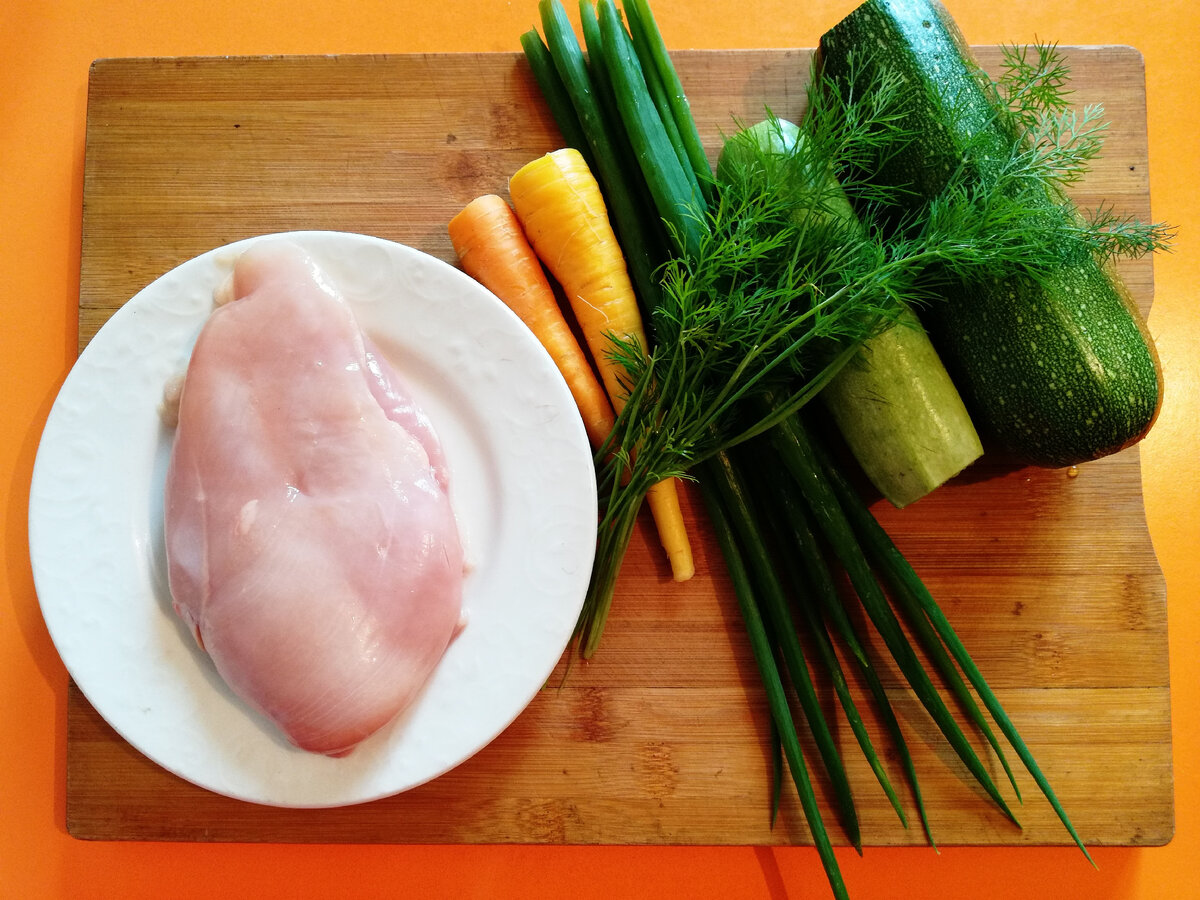 Очень многие блогеры показывают рецепты приготовление кабачков где просто используют много высококалорийных компонентов и сыр, и майонез и затем все это обваливают в муке и обжаривают в большом количестве масла растительного. Сегодня поделюсь с вами, мои дорогие подписчики не калорийным рецептом приготовление кабачков. Плюсы первое экономия времени приготовление, т.е не надо обжаривать каждый кружочек отдельно, а второе такой кабачок не жирный, с него не стекают огромное количество масла и не нужно промакивать бумажными полотенцами, и третье в таком виде кабачок хорош и в горячем, и в холодном виде. Мне потребовалось: 1шт кабачок – 550 грамм Пучок зеленого лука, петрушка Соль – 1 ч.л. Перец -1ч.л. 3шт - яйца Мука – 6 ст.л. 3ст.л. –растительного масла 50-60мл воды Начинка: Филе половины куриной грудки, может потребоваться целая грудка зависит от размера грудки. 150грамм – морковь Приготовление: Нежные, только срезанные кабачки, мою, отправляю в чашу блендера, делаю пюре. В получившеес
