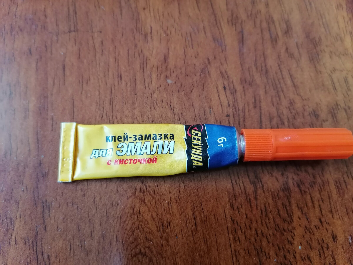 Тюбик похож на суперклей. Внутри него жидкий белый ремонтный состав.
