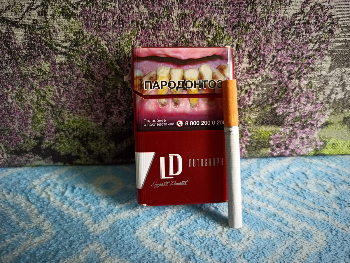 Всем доброго времени суток, друзья. LD - это весьма посредственная марка российских сигарет, на мой взгляд. Вот сколько бы я видов не пробовал - одна дрянь. Но сегодняшний вариант смог меня удивить. Это сигареты LD Red Autograph. Я не знаю, являются ли они отдельным сортом или это какая-то "лимитка". Но дело в том, что с тех пор я в магазине их не встречал. Как вы знаете, есть обычный LD Red в бело-красной пачки. Так вот они весьма посредственные и очень вонючие. Здесь же пачка выглядит иначе - она полностью красная с белыми вставками. Фильтр пробковый, надпись "LD" изображена на самом фильтре, как в сигаретах Мальборо. Некурительный обод присутствует. Тут меня удивил аромат из пачки - он реально табачный, хотя некоторое количество соуса ощущается. Намного лучше запах, чем в обычном LD или красном Winston от той же JTI. Да и с набивкой дела обстоят лучше. Она, не сказать что прямо плотная, но всë же для российских сигарет неплохая. Дата выпуска - 03.2018. Стоили тогда 90 рублей. Я не
