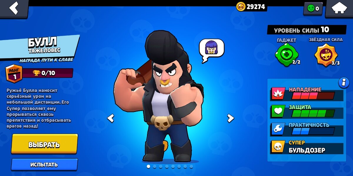 Всем привет и это обзор игры brawl stars четвёртая часть и сегодня расскажу вам про бойца Булл вот так он выглядит Также на этого бойца есть скины сейчас я их всех покажу Этот скин называется" викинг Булл" он стоит 80 кристаллов в магазине. Этот скин называется "тачдаун Булл", он стоит 80 кристаллов, но сейчас купить его нельзя, это архивный скин. Этот скин называется "полузащитник Булл" он стоит 2500 звездных очков. Этот скин называется "король варваров Булл" он давался бесплатно в 2020 году . Этот скин называется "серебряный булл" он стоит 10000 когда у бойца 10 сила. Этот скин называется "золотой Булл" он стоит 25000 золота когда у бойца 10 сила, можно купить после серебряного скина. Этот скин называется "астробык Булл" он стоит 300 кристаллов, Первый гаджет Второй гаджет Первая звездная сила Вторая звездная сила Это значки бойца Булл. На сегодня все , а завтра выйдет новая статья.