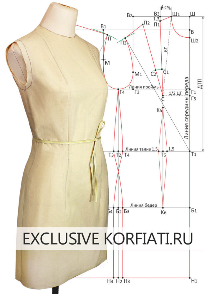 В материале: -Пошаговое построение выкройки платья: строим основу на любую фигуру