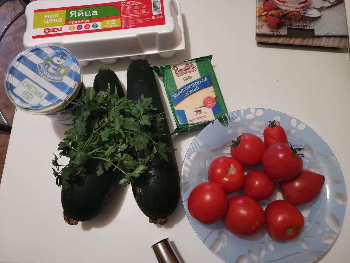 К вечно возникающему в августе вопросу о том, что приготовить из кабачков 🥒🥒🥒 Напишу сразу, дабы не смущать вас, что сметана на фото лишняя, в рецепте её нет😆 случайно затесалась🙈 А нужны нам будут собственно кабачки, 2 целых яйца и 3 белка, сыр (у меня ушло 50 г лёгкого 35%), свежая зелень петрушки и помидоры (у меня мамины домашние). Кабачки нарезала мелкими кубиками. Сковородку разогрела с небольшим количеством кокосового масла. Припустила кабачки, добавив чуток замороженного базилика и соль по вкусу. В отдельной миске смешала яйца, белки и натертый сыр, добавила нарезанную зелень петрушки и немного сухого чеснока. Все взбила вилкой до однородности. В силиконовую форму выложила кабачки, слив с них лишнюю жидкость, сверху вылила яично-сырную смесь, выложила кружочки помидор. Поставила в духовку, разогретую до 200 градусов минут на 20. Вот такое вкусное и полезное блюдо получилось у меня. Отлично подойдёт для завтрака или обеда ❤️
