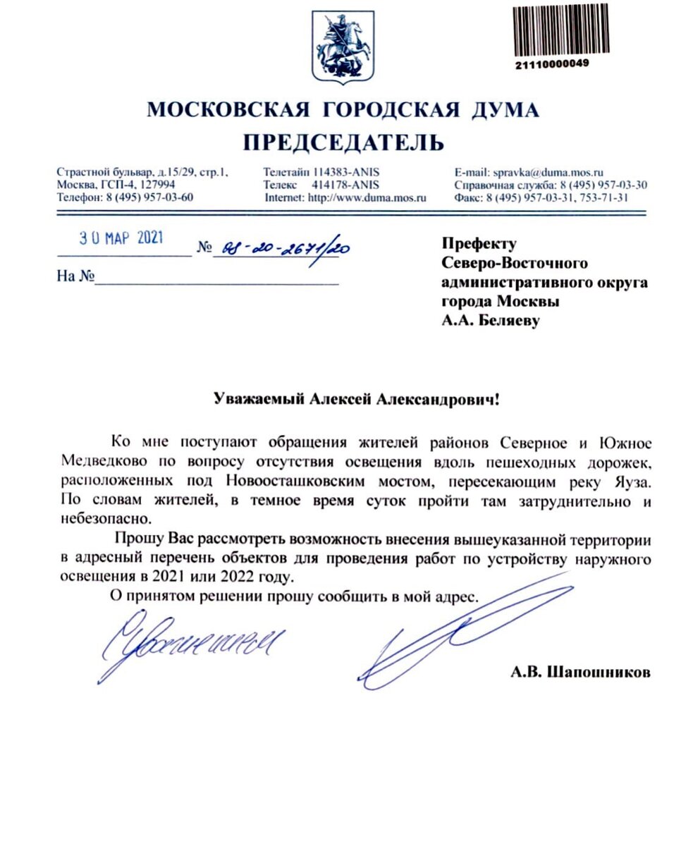 Жители районов Северное и Южное Медведково неоднократно обращались с просьбой помочь в решении проблемы освещённости под мостом через Яузу на Енисейской улице. Наш депутат Алексей Шапошников направил запрос в Префектуру СВАО, после чего объект внесли в адресный перечень для проведения работ по устройству наружного освещения в 2021 году. И сегодня освещение начали монтировать! Теперь проход под Новоосташковским мостом станет безопаснее!