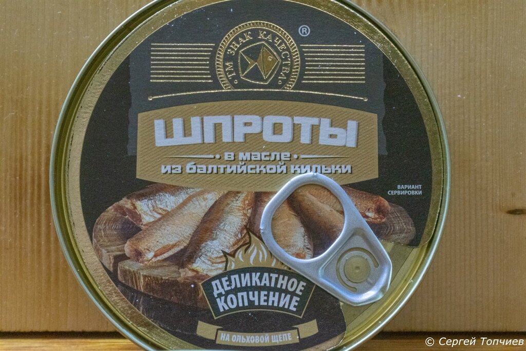 - Закончится служба. Брошу все и куплю себе кусочек земли под Рязанью, - мечтал Штирлиц, подъезжая к своей вилле в пригороде Берлина. Вот и я так примерно стал рассуждать после покупке в сетевом магазине. Торговый зал сетевого магазина, в котором все разложено по полочкам и по стойкам. Рыбные консервы, мясные. И тут приходит желание опробовать шпротные консервы, которые с самой весны не покупали. Да еще в этот день на эту продукцию оказалась двадцатипроцентная скидка. Хотя в среднем стоимость 160 граммовой банки шпрот одинаковая. - Дома разберемся, - с такими словами бросил я ее в тележку. Цена на шпротную консервацию получилась 94,99 рубля за банку весом 160 грамм. Вот и начал разбираться со своей покупкой дома. Крутить вертеть со всех сторон. Читать и изучать все подробнее. Первое, что мне прям-таки бросилось в глаза и очень удивило, так это место производства. Читаем и на этикетке находим, что произведены шпроты в Рязанской области и город Ряжск указан. Вот где действительно #удивля