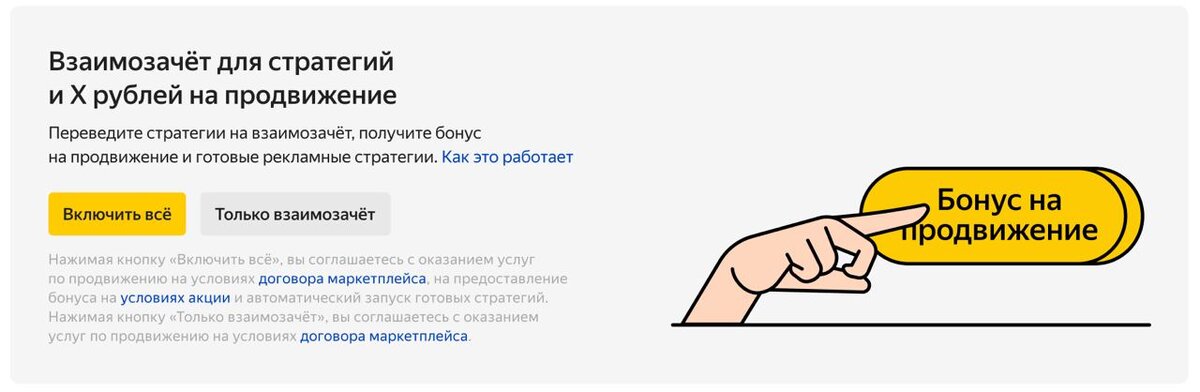 Продавцам Яндекс.Маркет разрешили рекламировать товары без предоплаты. Теперь платить за привлечение заказов можно после их доставки, поскольку компания перевела рекламные стратегии на взаимозачет. Кроме того, Яндекс предлагает селлерам начать работу с уже готовыми стратегиями и оплачивать их бонусами, которые будут начислены после подключения. Устанавливая рекламные ставки, продавцы могут добиться того, что их товары будут показывать выше конкурентов. Многие продавцы уже пользовались этими возможностями, но есть те, кого Яндекс только привлекает к рекламному сотрудничеству. Бонусы на продвижение могут получить абсолютно все. Известно, что бонусы будут рассчитываться для каждого партнера. На них будут влиять оборот, категория товаров и история продаж. Активировать бонусы можно до 31 августа, а действовать они будут два месяца. Это отличный способ, чтобы попробовать как хорошо работает продвижение Маркета. Действующие продавцы могут перевести стратегии на взаимозачет в один клик, а нов