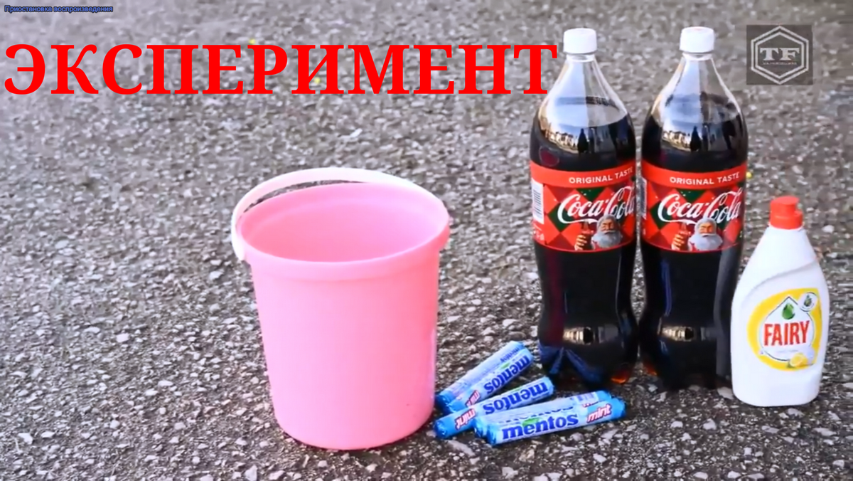 Смешиваем Колу, Fairy и ментос