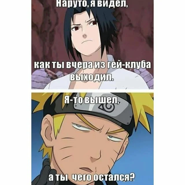 «Нет, блять. Не он. Это хуй, одетый как Саске. Они просто очень похожи» — блондин закатывает глаза и закрывает рукой лицо. Цунаде понимающе кивает, наивно полагая, что встреча с лучшим другом выбила из Узумаки слезы. Да, слезы. Истерику, ебанный в рот, истерику!