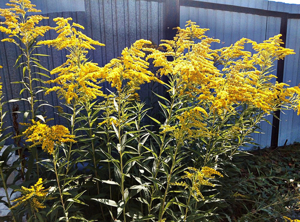 К концу лета в палисадниках расцветают высокие золотисто-желтые метелки золотой розги.