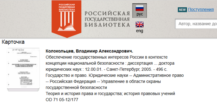 Читатели, незнакомые с механизмом защиты диссертаций в Санкт-Петербургском университет МВД РФ, подумают, что Колокольцев В.А. написал диссертацию сам и ошибутся.