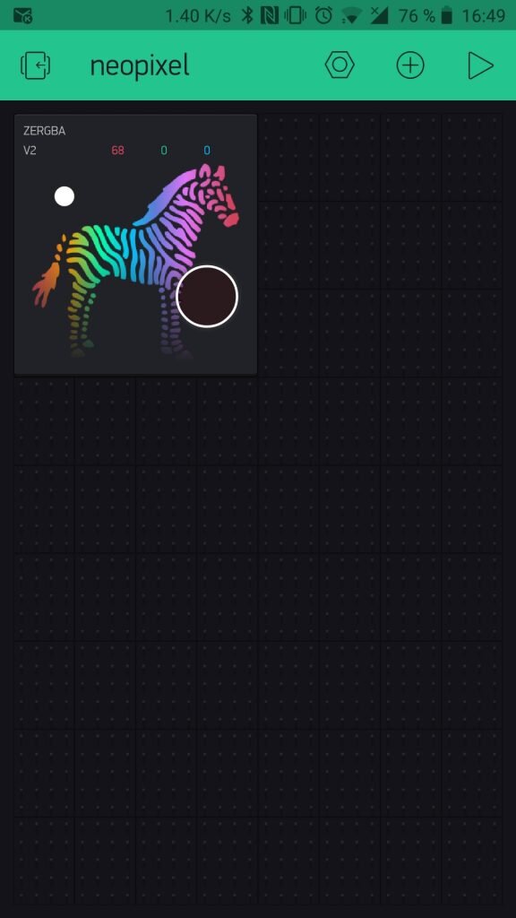 В данной статье речь пойдет о необычной RGB светодиодной ленте WS2812. WS2812 – это адресная светодиодная лента, она может зажечь любой свой светодиод отдельно независимо от других и также можно любому диоду изменить цвет независимо от других диодов в этой ленте. Это все возможно благодаря микросхеме в каждом светодиоде ленты, который имеет свой адрес и зажигается по команде. При этом все светодиоды должны быть подключены последовательно и на данной ленте имеется стрелка которая показывает направление подключаемых диодов. Данную светодиодную ленту и аналогичные можно купить здесь: http://ali.pub/2wm1h4 Они различаются количеством светодиодов на 1 метр. Ну что-ж давайте попробуем удаленно по управлять светодиодной лентой с помощью смартфона. В этом нам поможет приложение Blynk. Создадим новый проект в приложении Blynk, выберем контроллер esp8266 и получим на почту ID key нашего проекта, его нужно будет добавить в скетч. После создания проекта у нас будет пустое поле, нам нужно будет доб