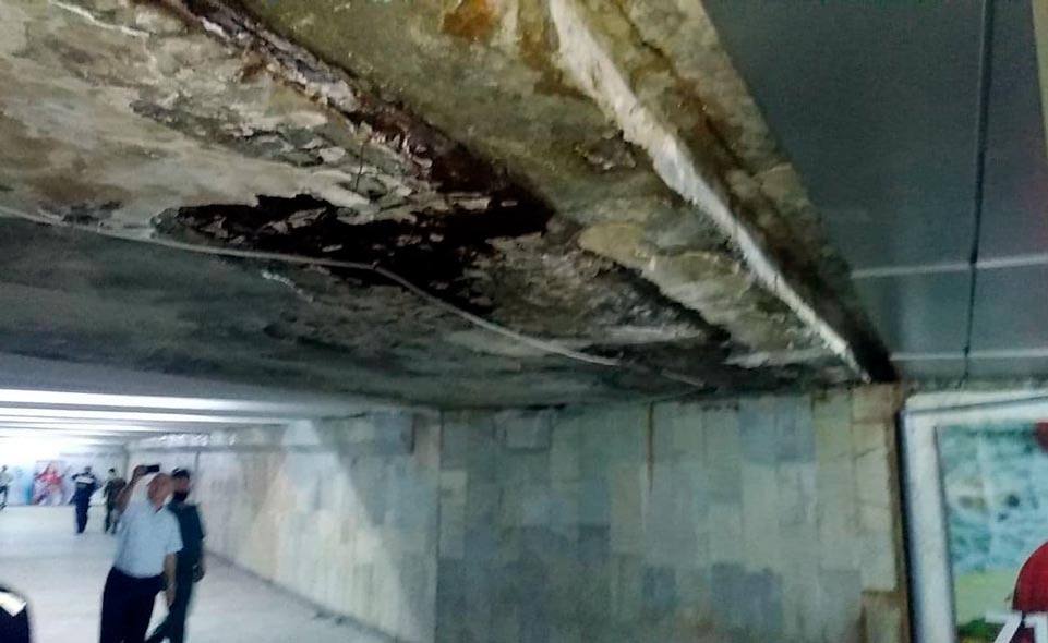В подземном переходе возле станции метро "Буюк ипак йули" обрушился потолок. В МЧС заявили - последствия обрушения незначительны