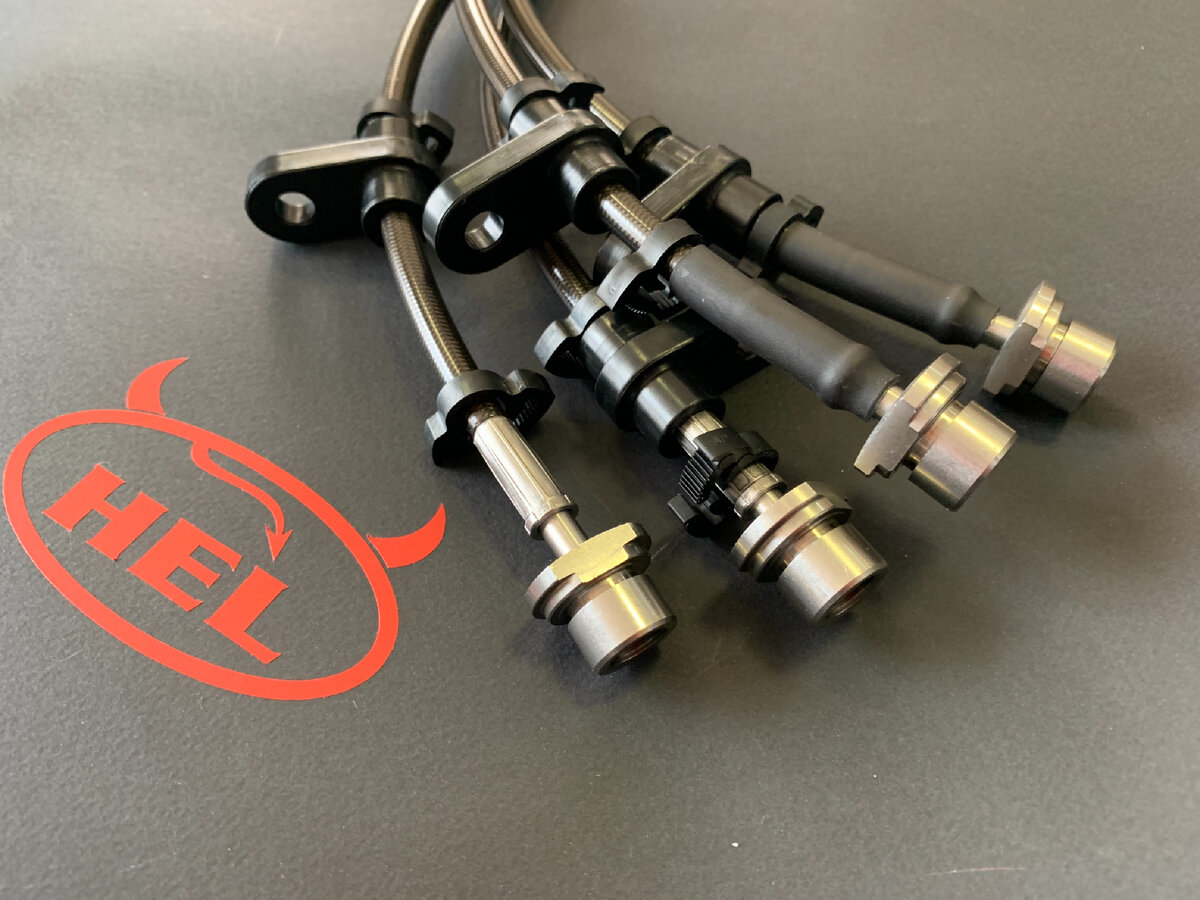 В этой статье хотим рассказать о пользе, которую можно получить от установки армированных тормозных шлангов. Есть 3 основные проблемы, которые помогают решить армированные тормозные шланги (это относится к автомобилям, по мото/квадро это отдельная тема) Этот, так называемый, рейтинг составлен менеджерами компании Hel Performance, согласно опросу среди покупателей. 1. Одной из самых частых причин покупки армированных тормозных шлангов является улучшение тормозных характеристик автомобиля. В чем тут дело? Как тормозной шланг может улучшить торможение? Вот в чем – армированный шланг (для упрощения шланги будем называть просто армированными, а стандартные резиновыми, хотя они тоже армированные) по сравнению с резиновым не расширяется при увеличении давления в системе. То есть при нажатии на педаль тормоза в автомобиле со стандартными шлангами вы сначала тратите время и усилие на «раздутие» шлангов, а только потом давите колодками на тормозные диски. Эффект от установки комплекта армирова